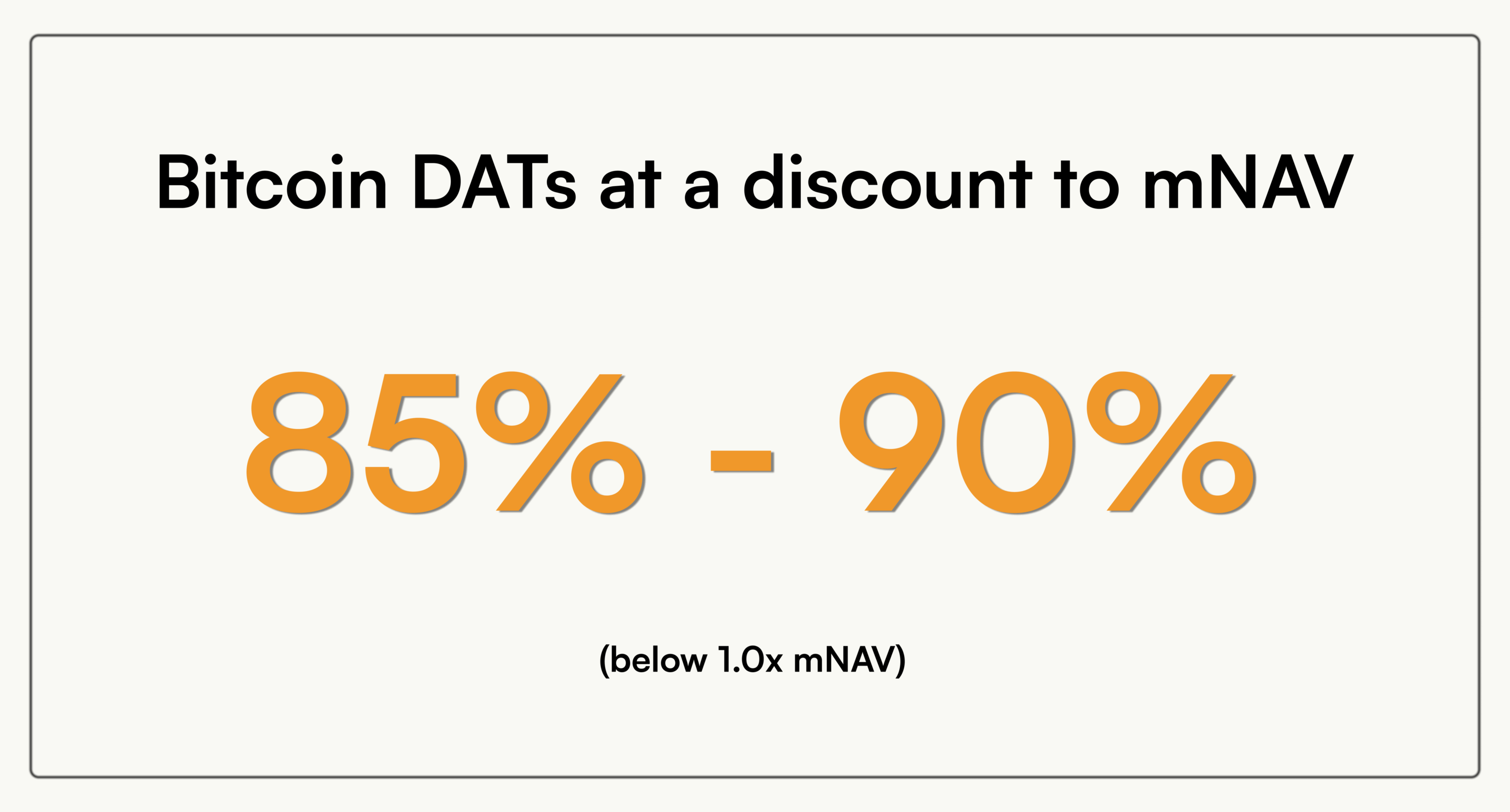 The ATM led model compounds only while the equity trades at a sustained mNAV premium. Once the stock slips below 1.0, issuance flips from accretive to dilutive and the primary engine of BTC per share growth shuts down. The category has now seen this dynamic play out in real time. A growing share of DATs trade at discounts, which means the sector cannot rely on ATMs as the default purchasing program.