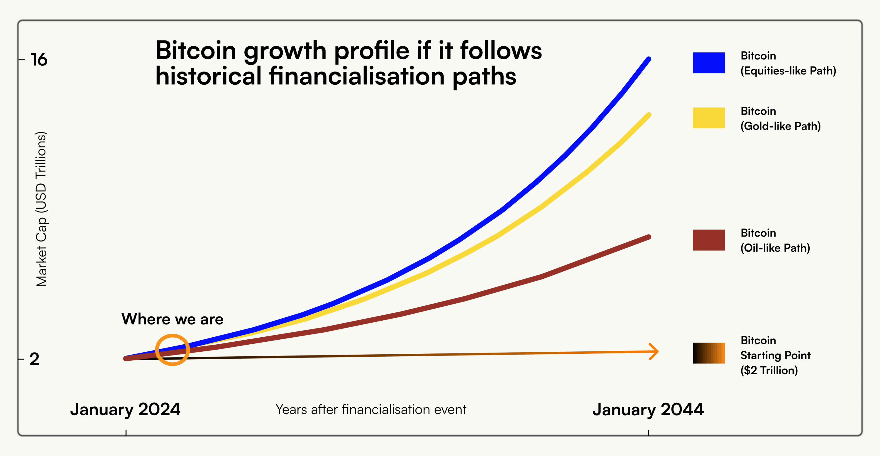 If we take the launch date of the first US ETFs (January 2024) as day 0, then we are only two years in and we can start to understand just how early we may be.